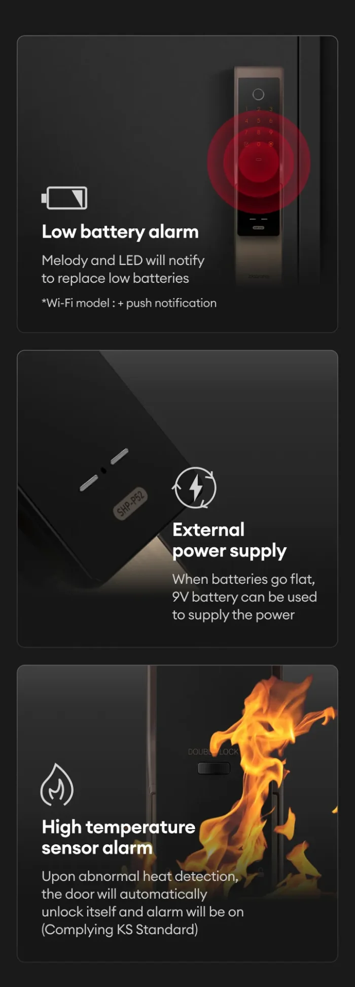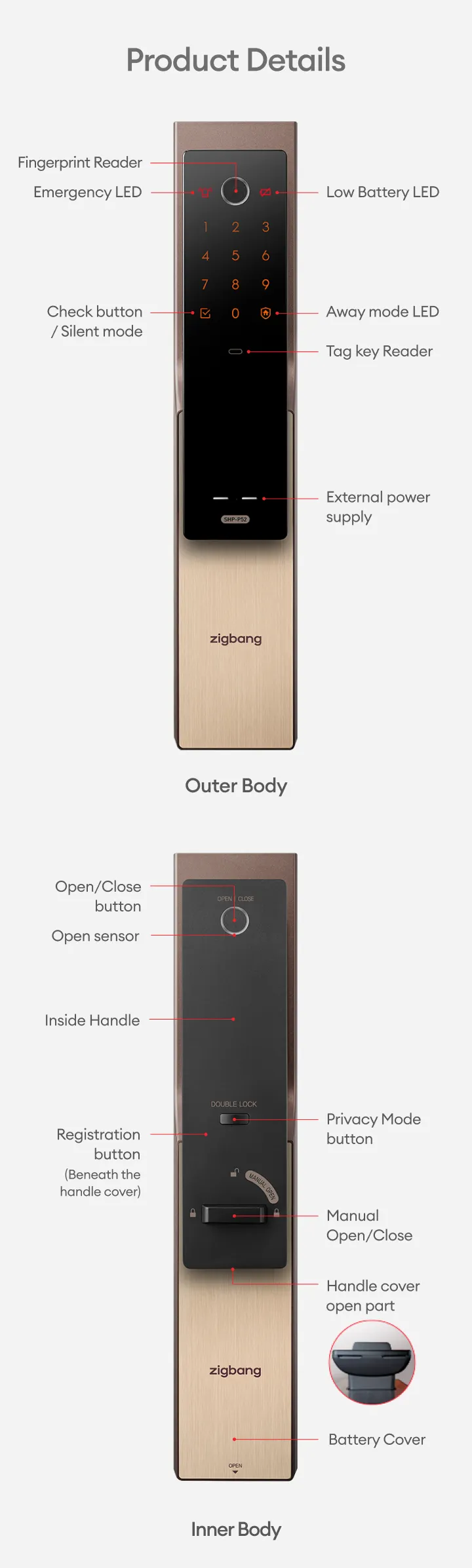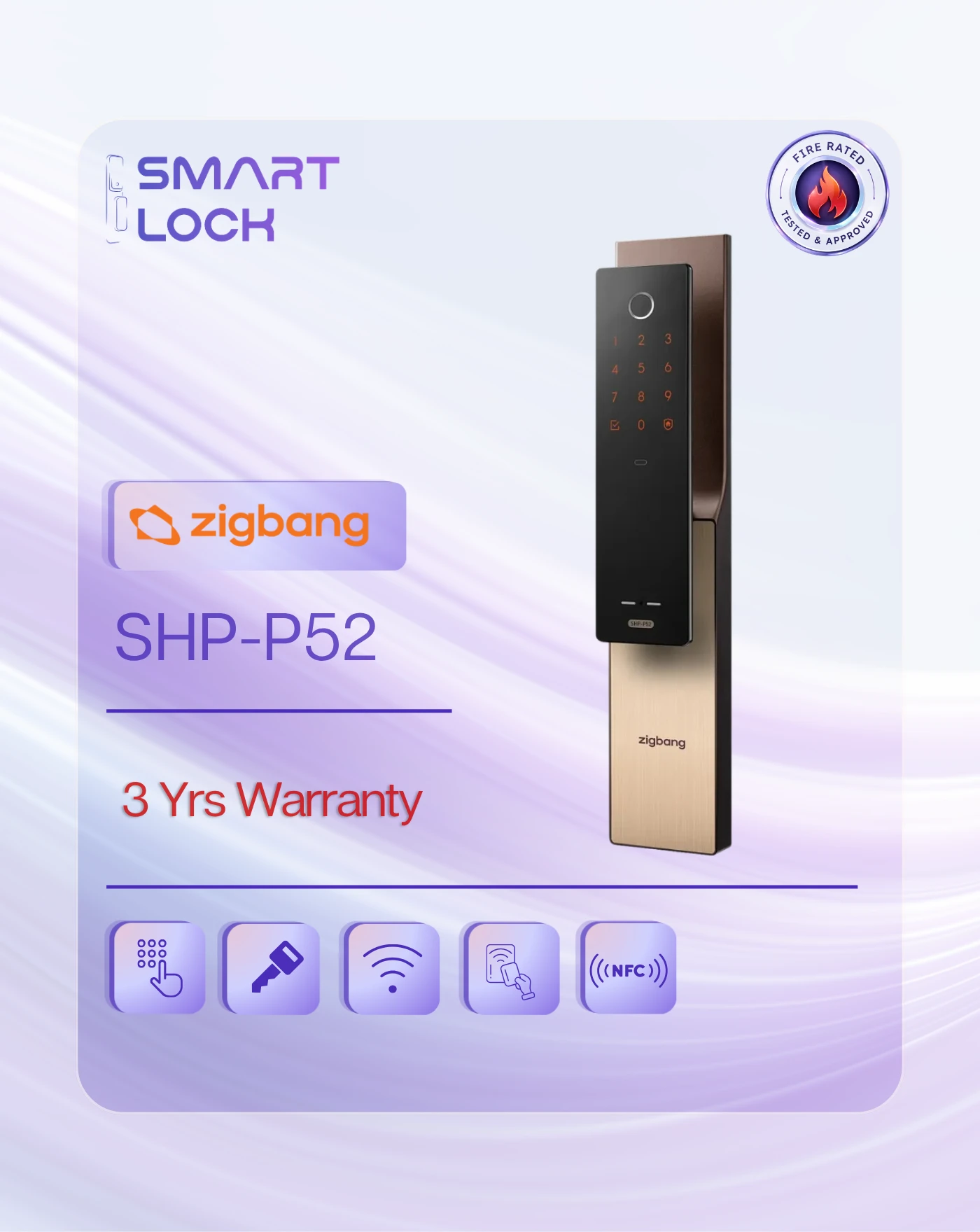 Zigbang SHP-P52 Fire-Rated Smart Lock – Technical Specifications