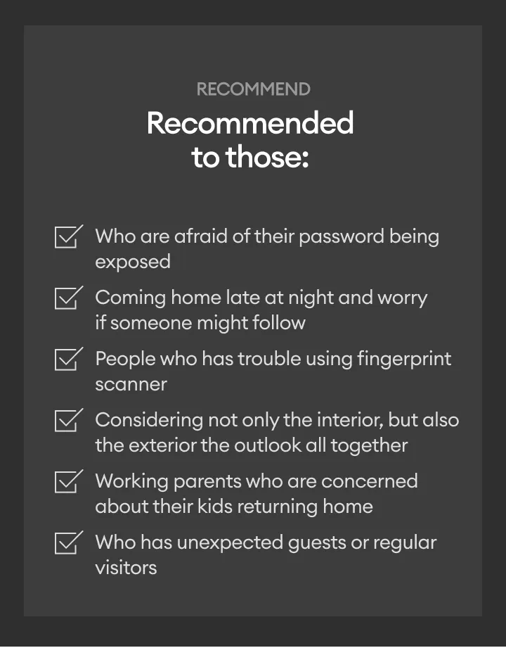 | Access Modes | 5 Ways – PIN Code, RFID, Fingerprint, Wi-Fi, Emergency Key |